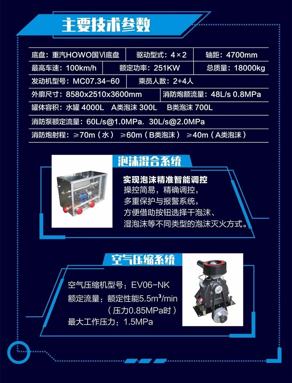 罐體容積:水罐4000L A類泡沫300L B類泡沫700L